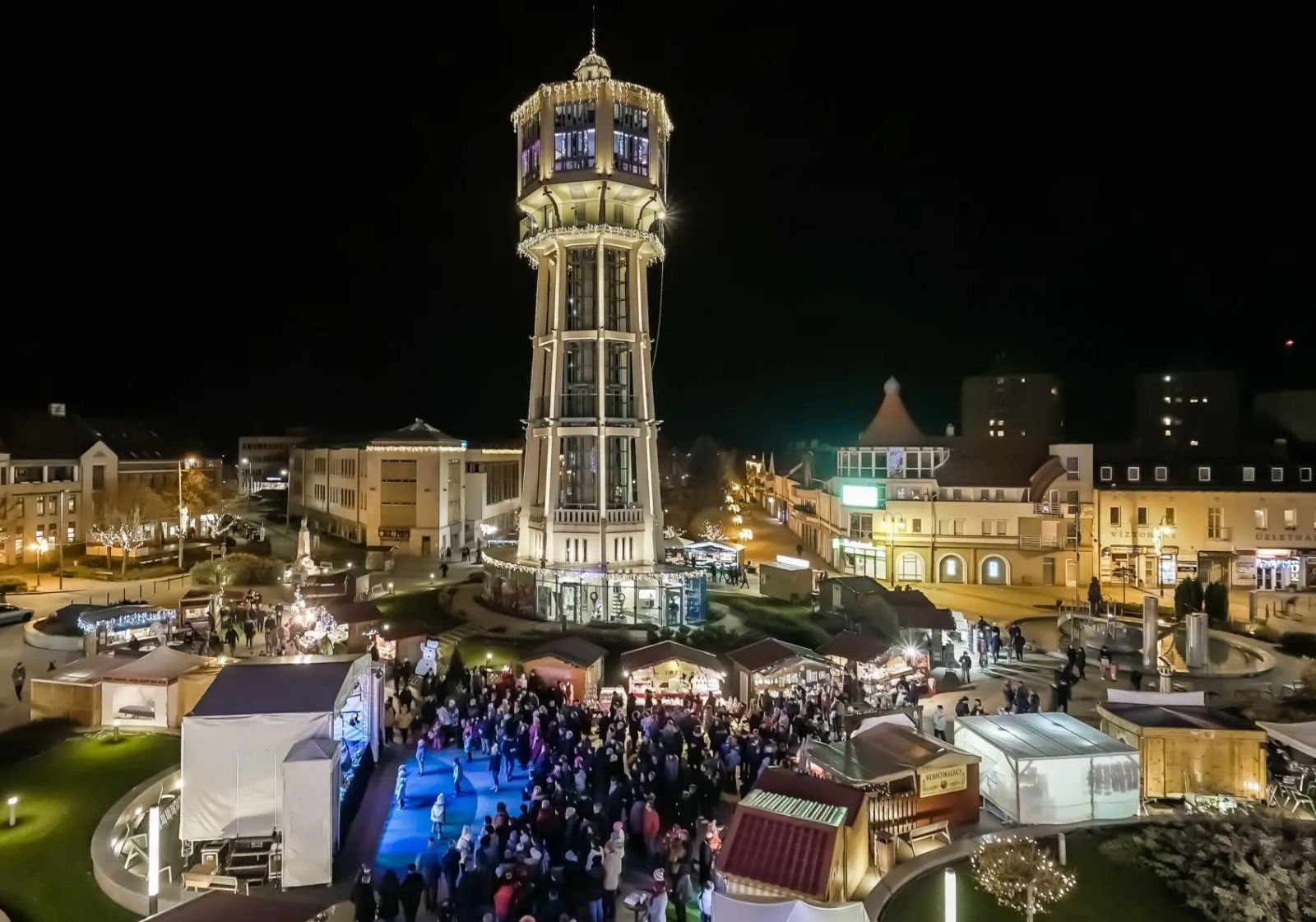 A Víztorony körül ismét felsorakoznak a díszes pompába öltöztetett kis faházak, melyek tehetséges kézművesek termékeit rejtik.